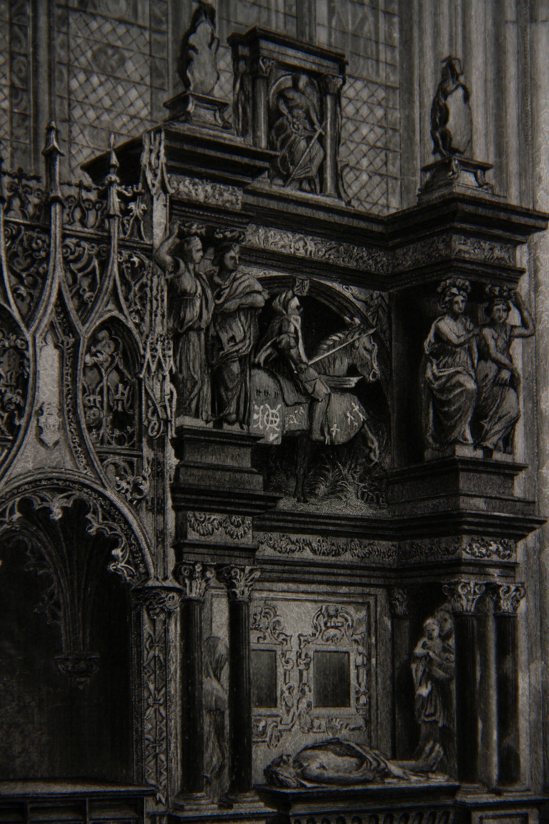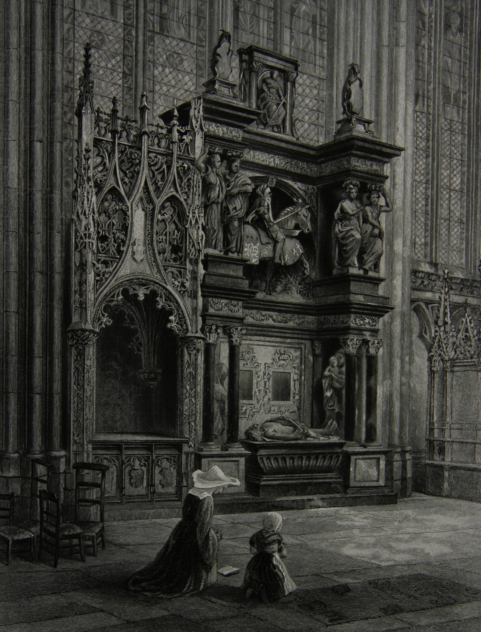19th century steel engraving “Tomb of Louis de Breze, Rouen Cathedral”