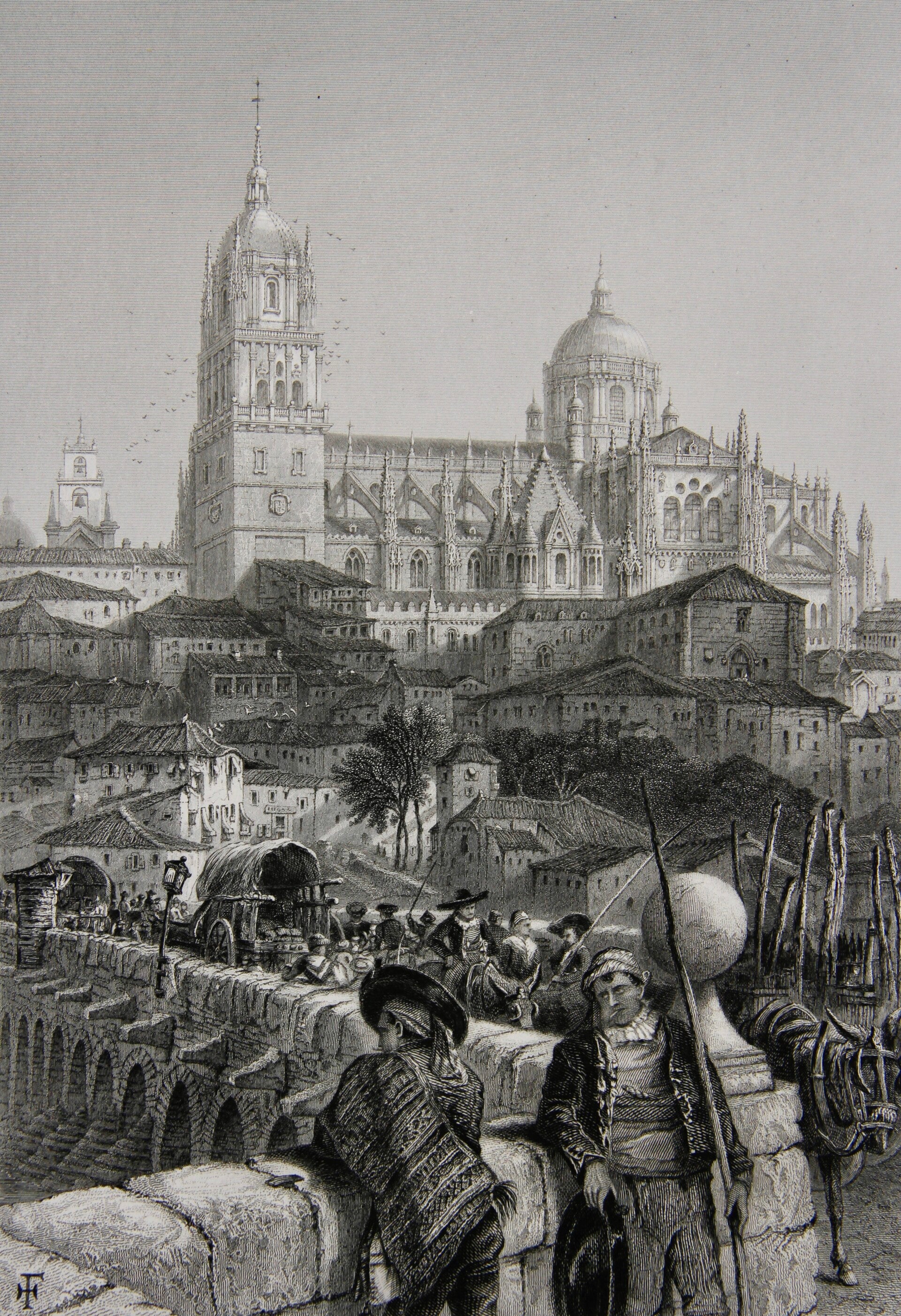 19th century steel engraving print “The Bridge of Salamanca”
