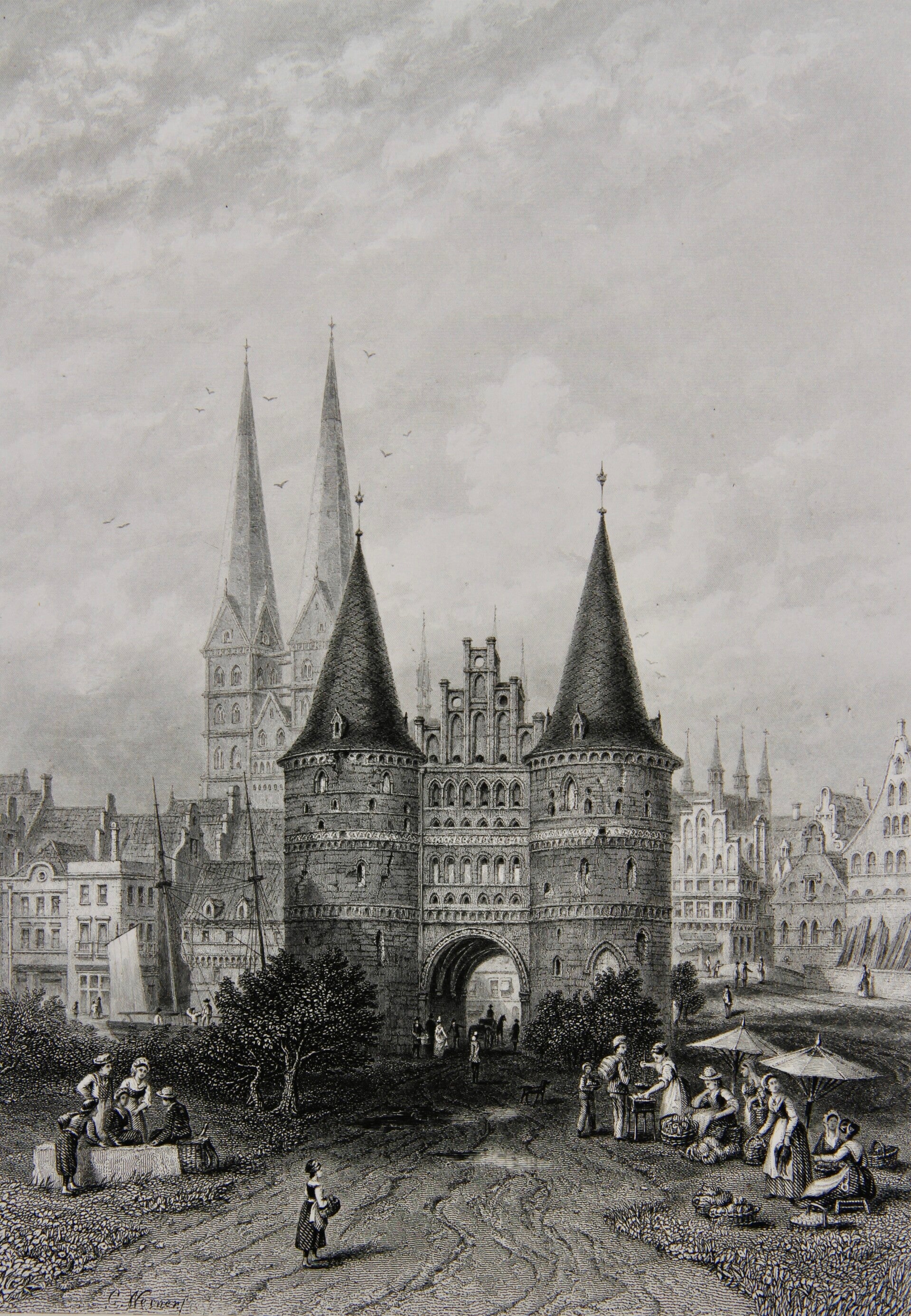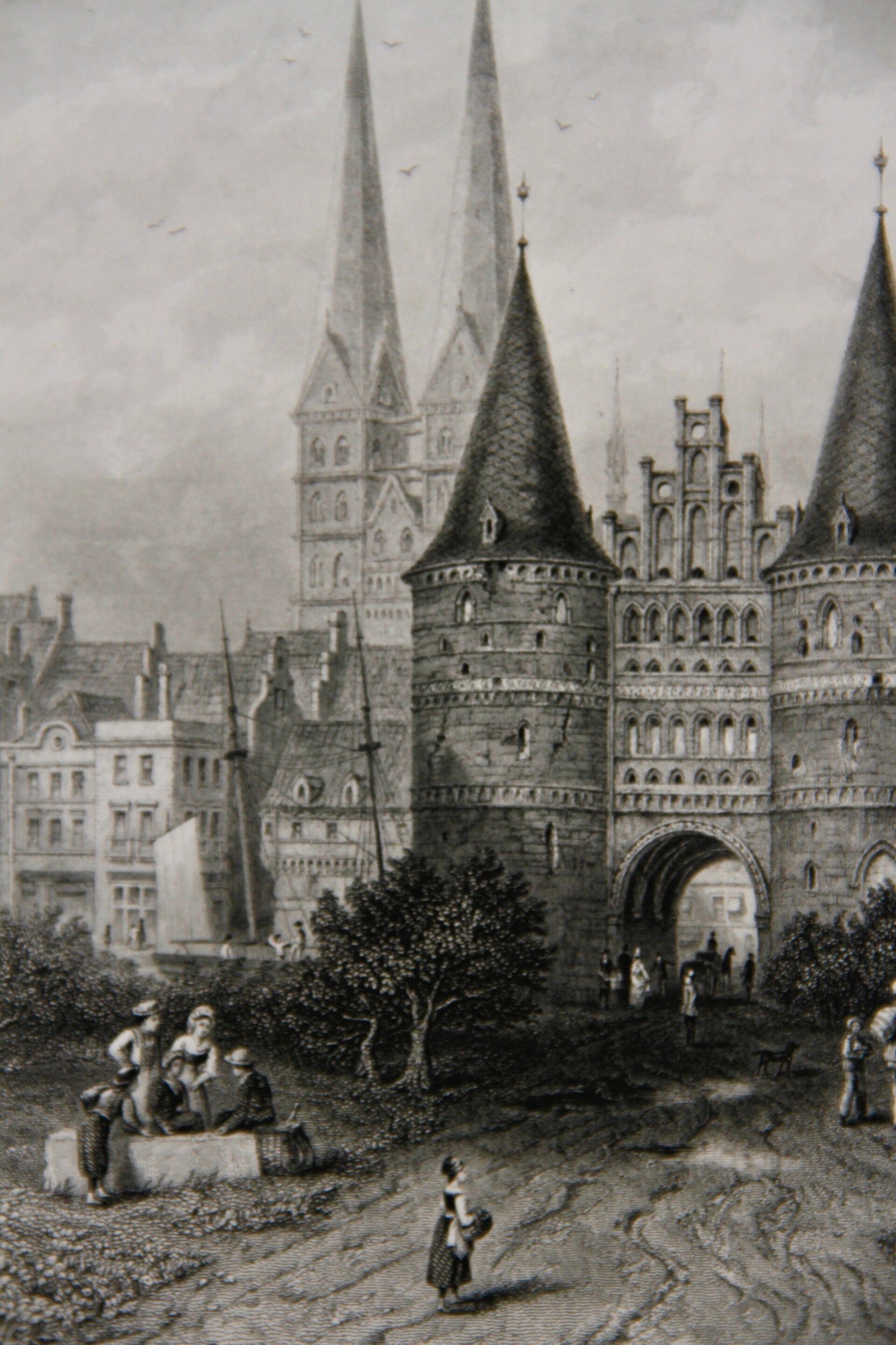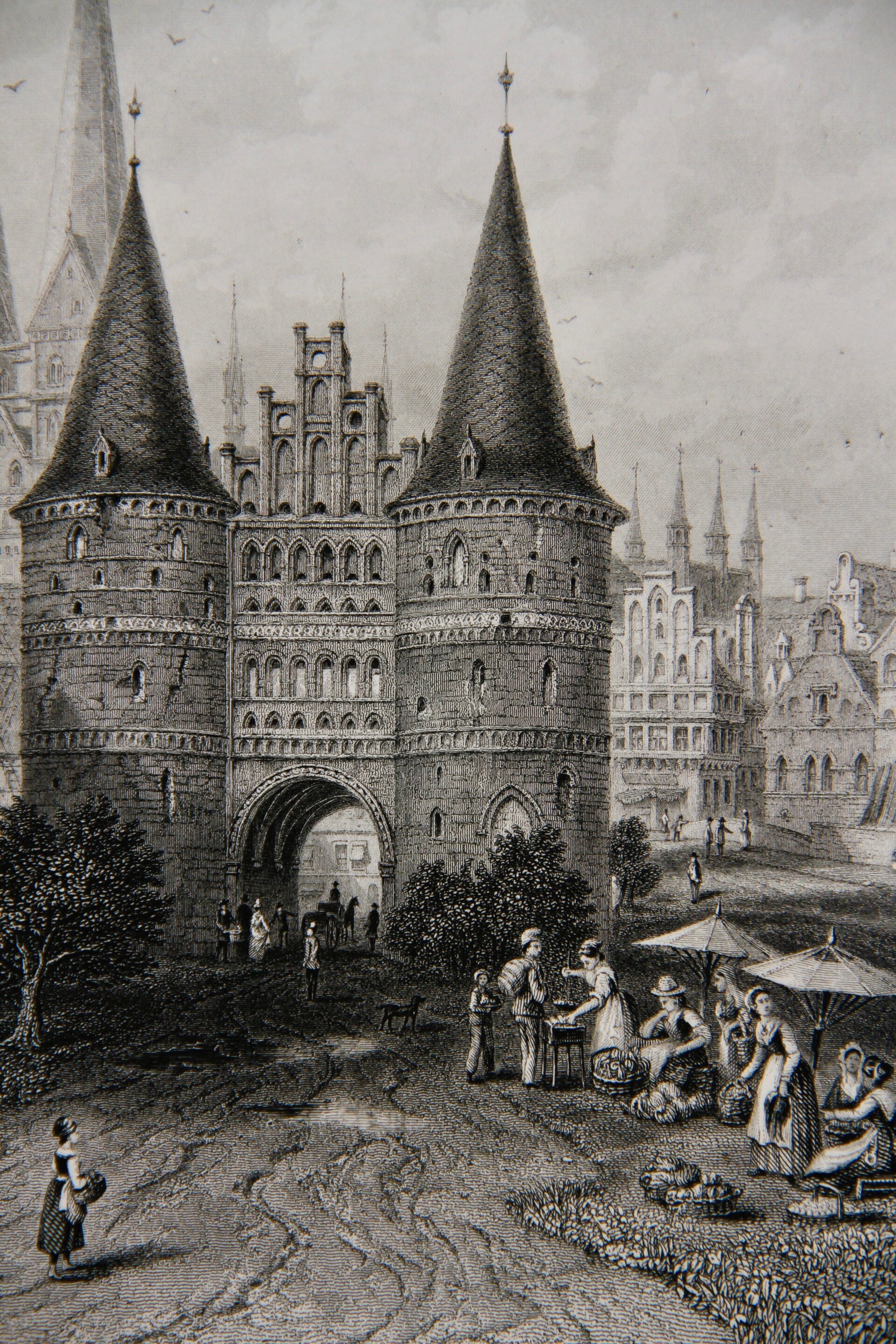19th century steel engraving print “The Holstein Gate, Lubech”