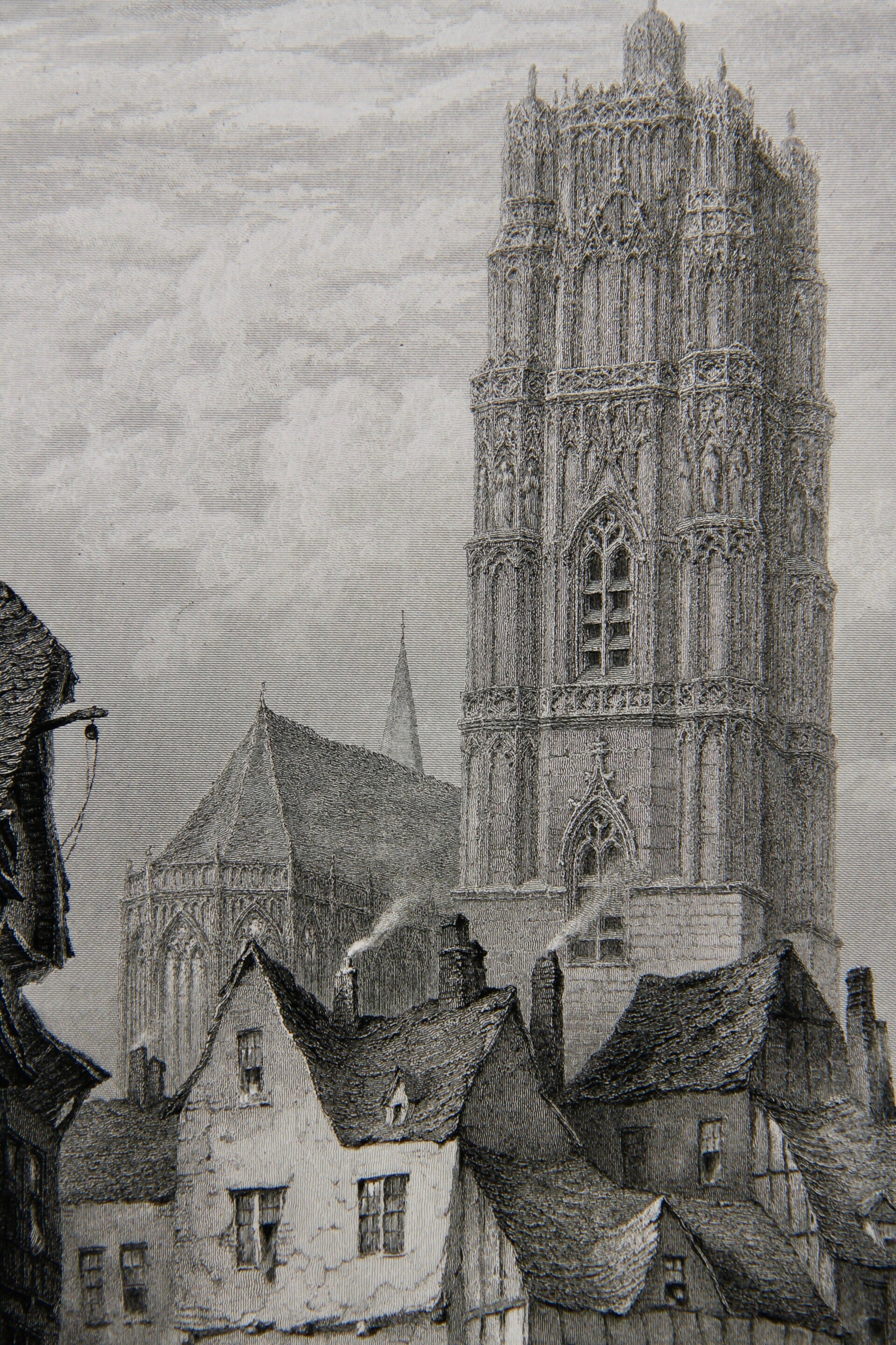 19th century steel engraving print “Cathedral at Rodez”