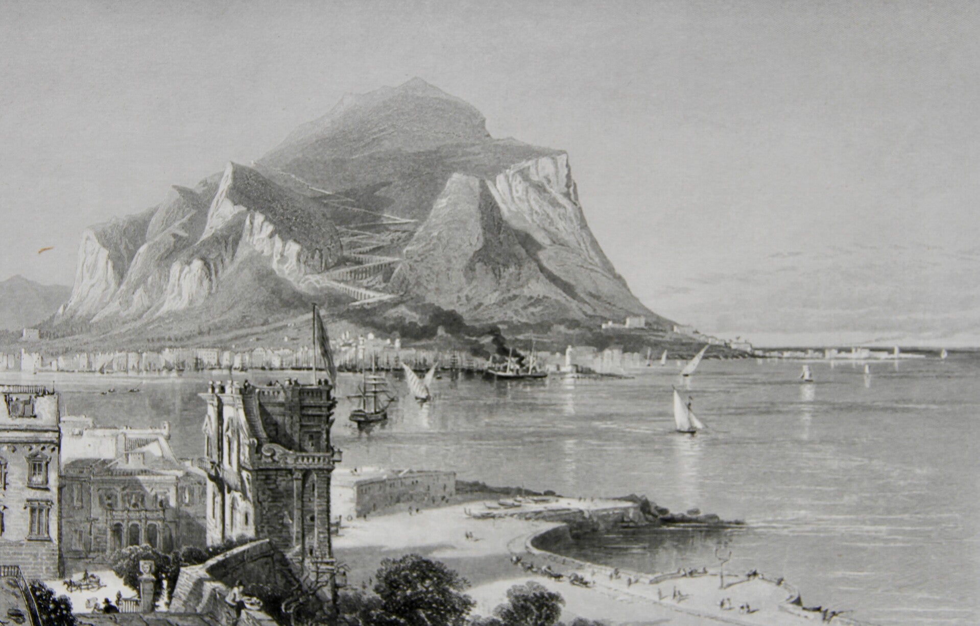19th century steel engraved print “Monte Pellegrino, Palermo”