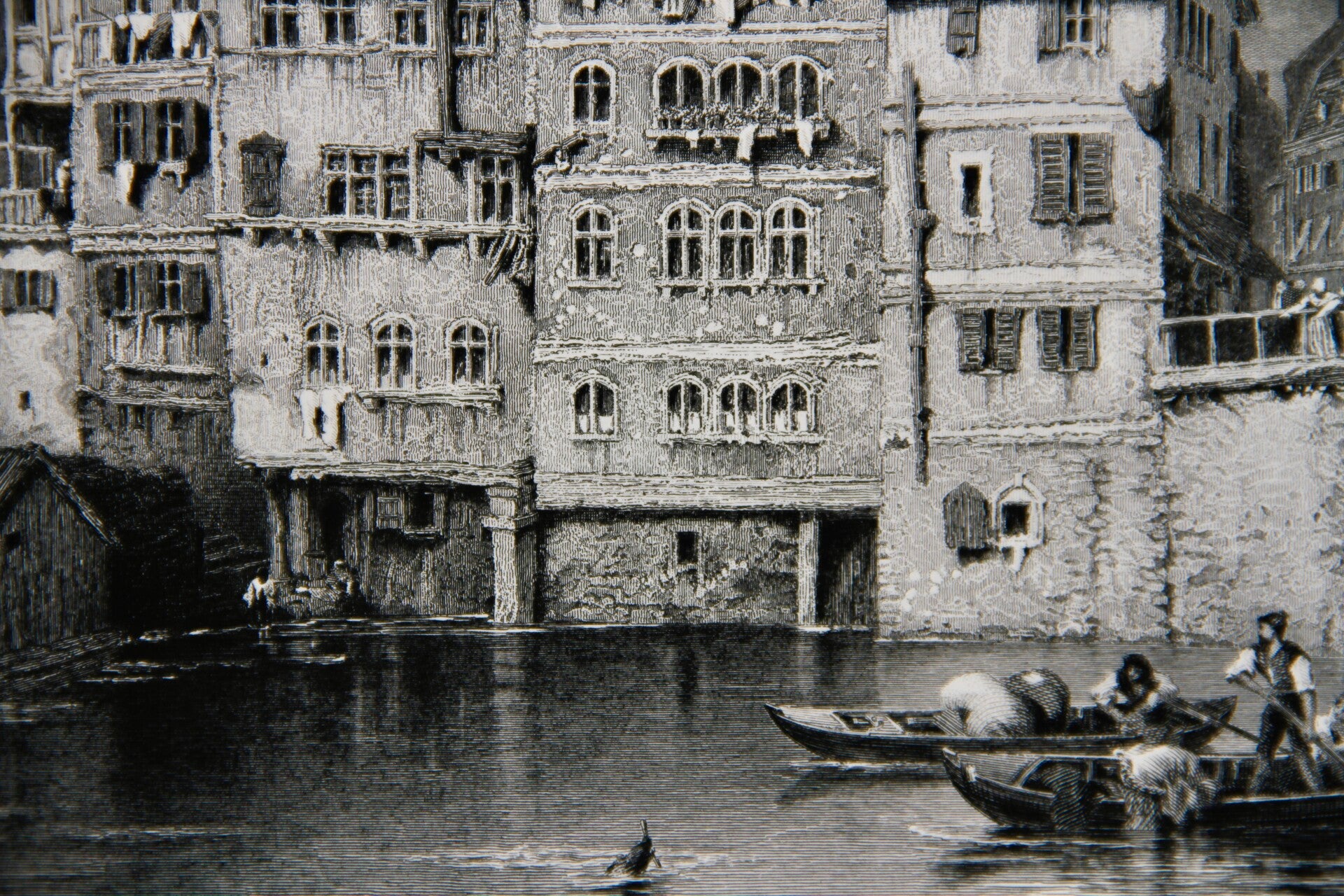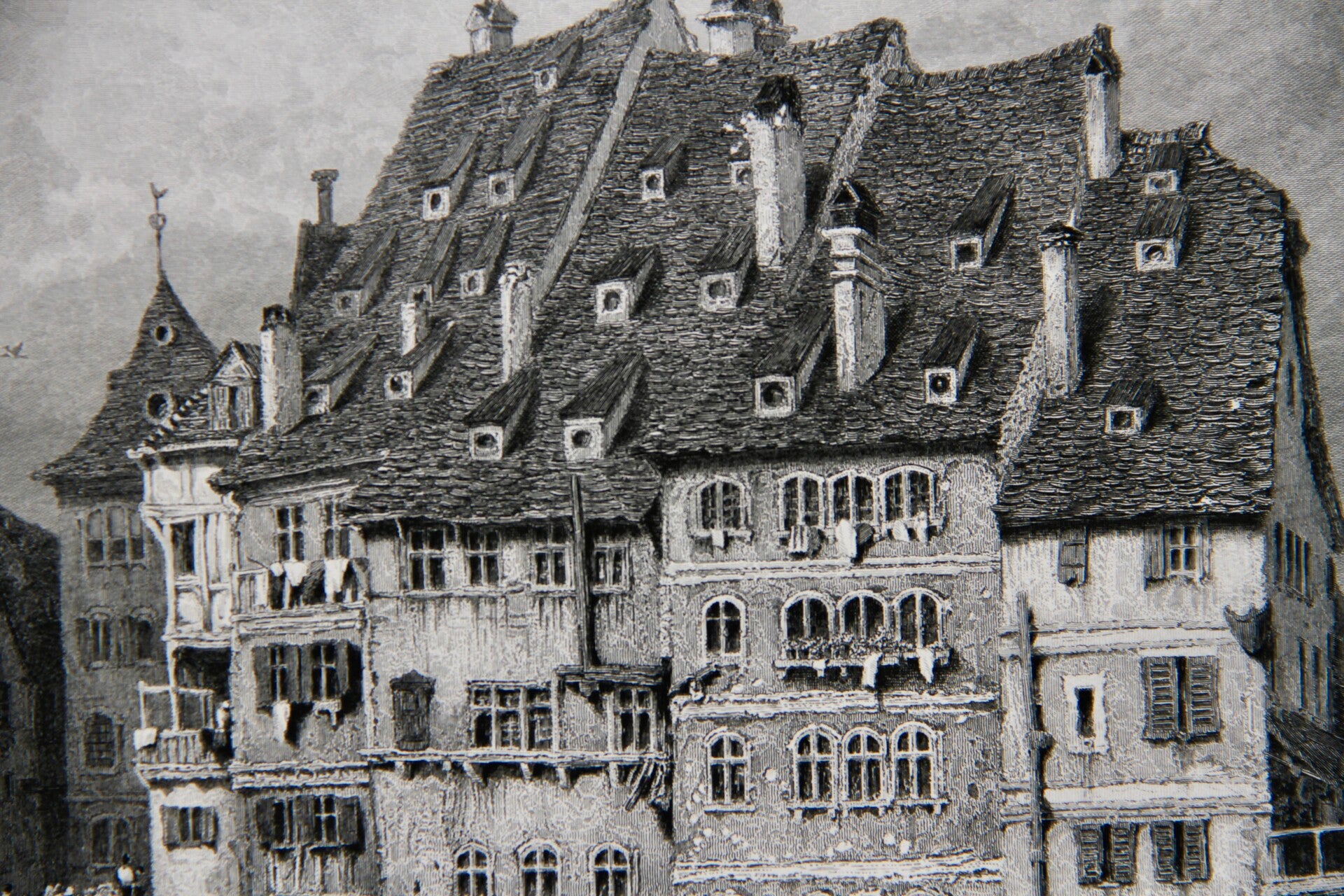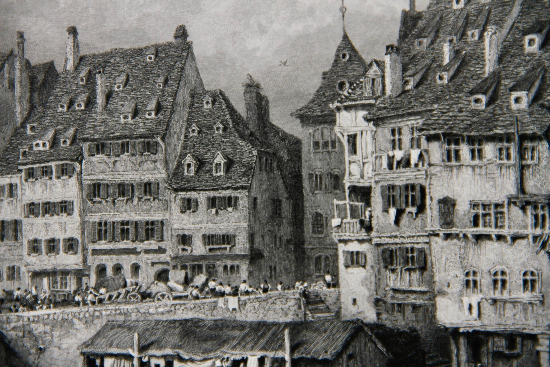 19th century steel engraved print “Old Houses, Strasburgh”