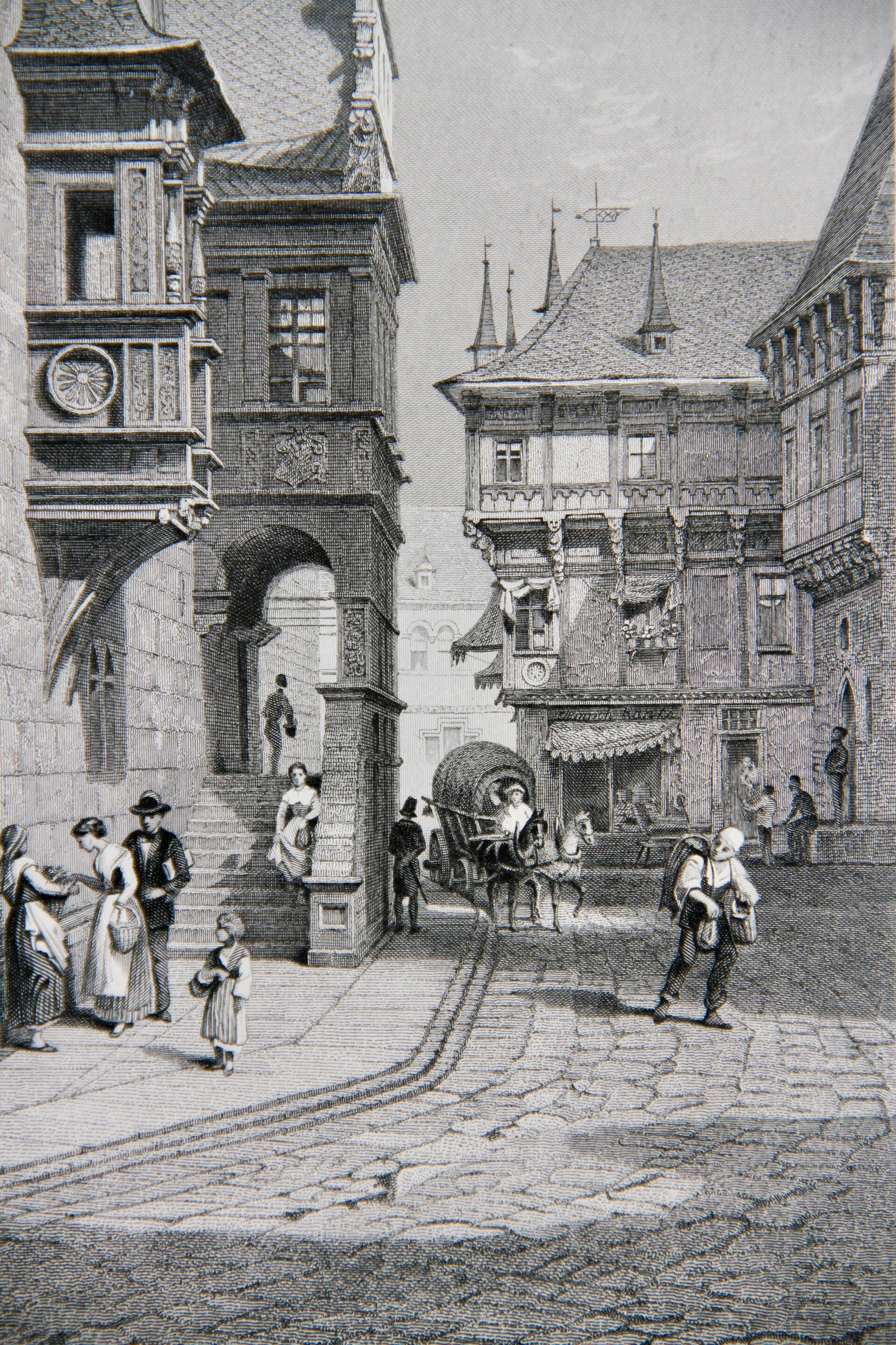 19th century steel engraved print “Town Hall, Halberstadt”