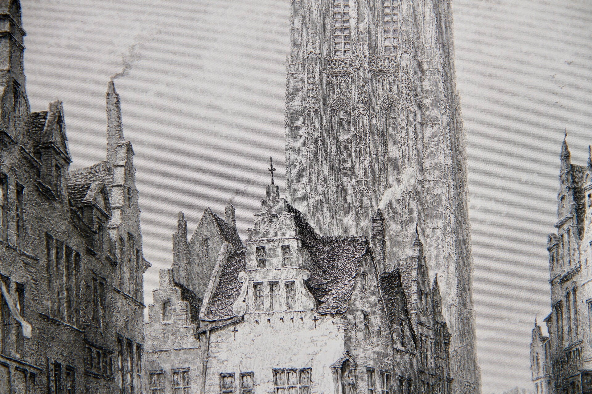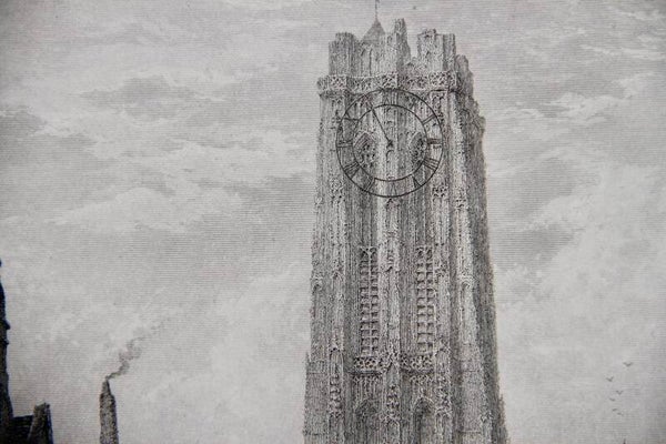 19tg century steel engraved print “The Cathedral, Mechlin”