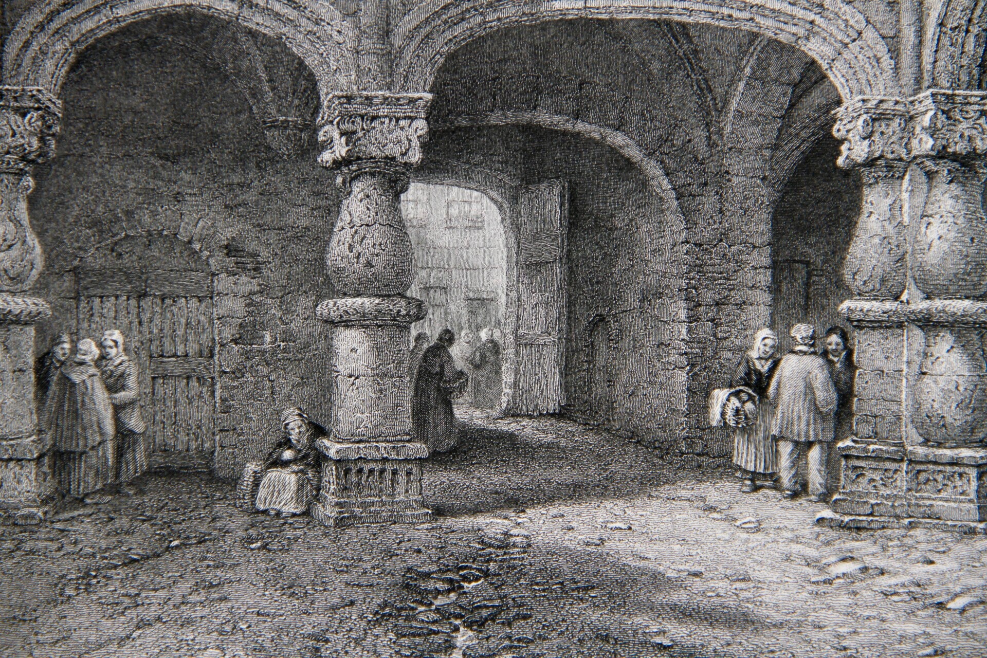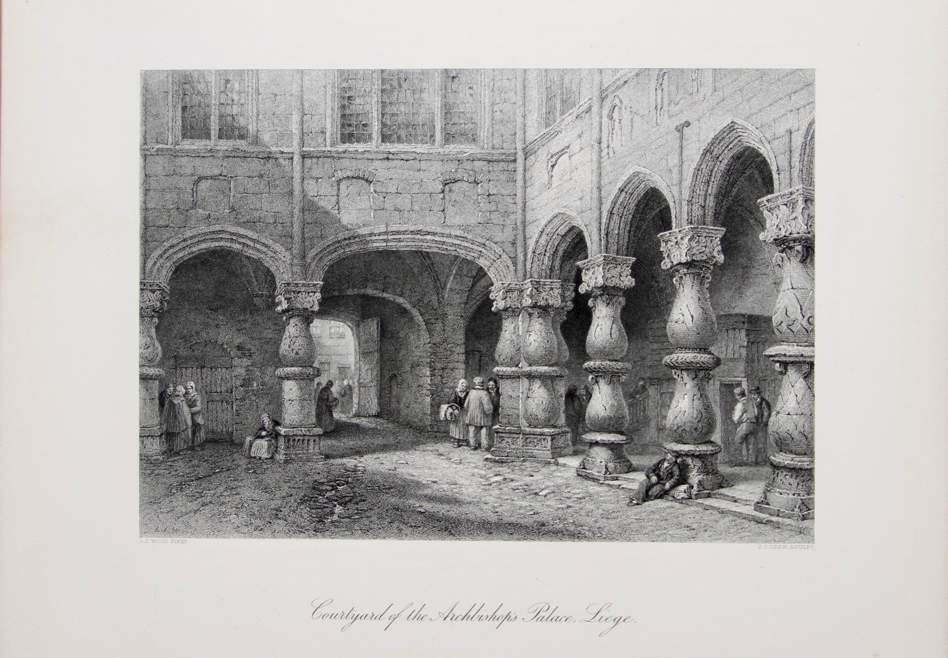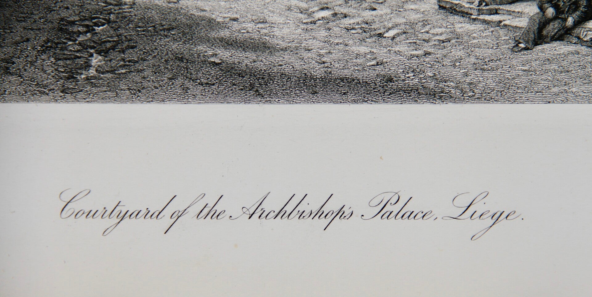 19th century steel engraved print “Courtyard of the Archbishop’s Palace, Liege”