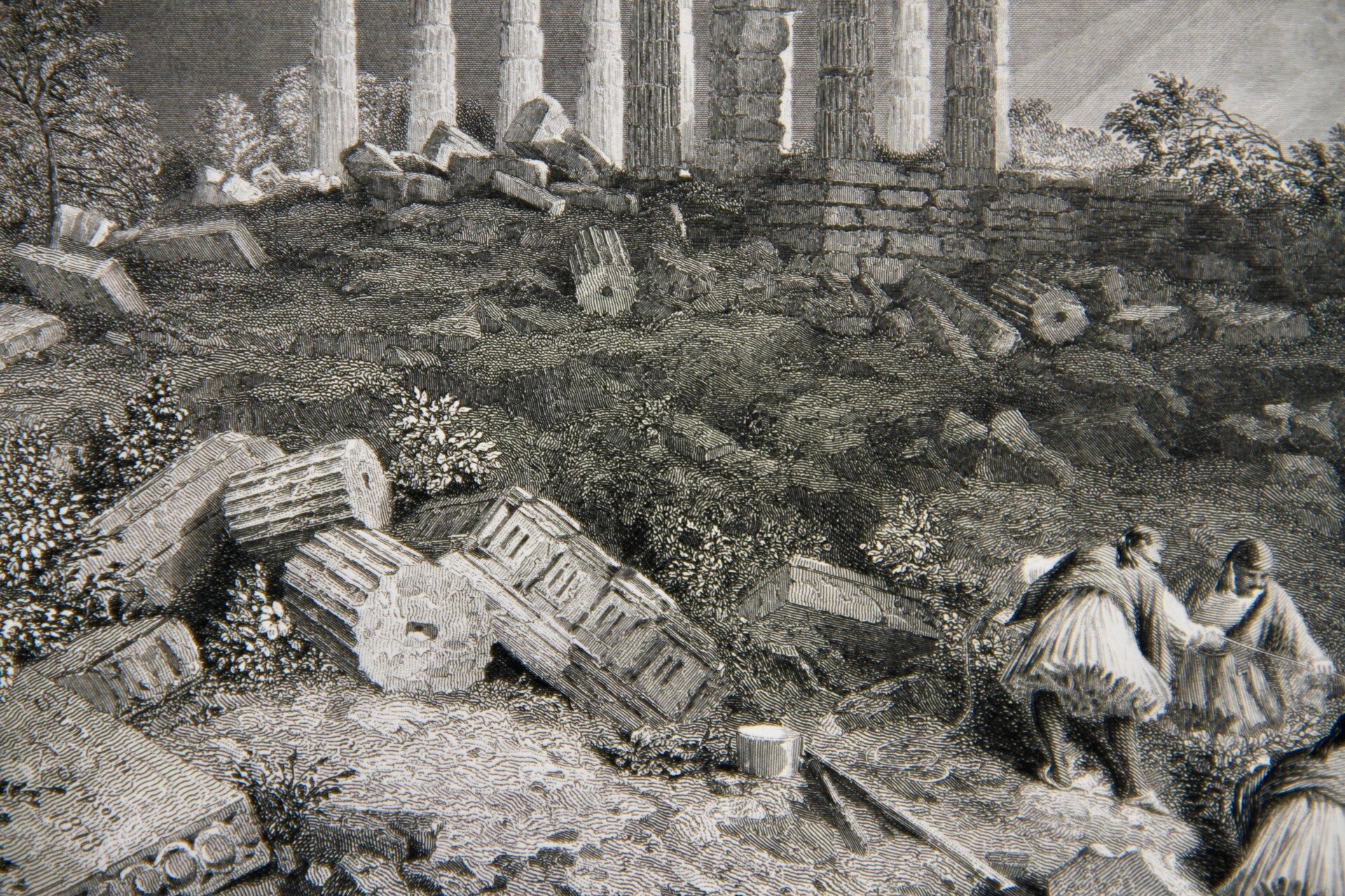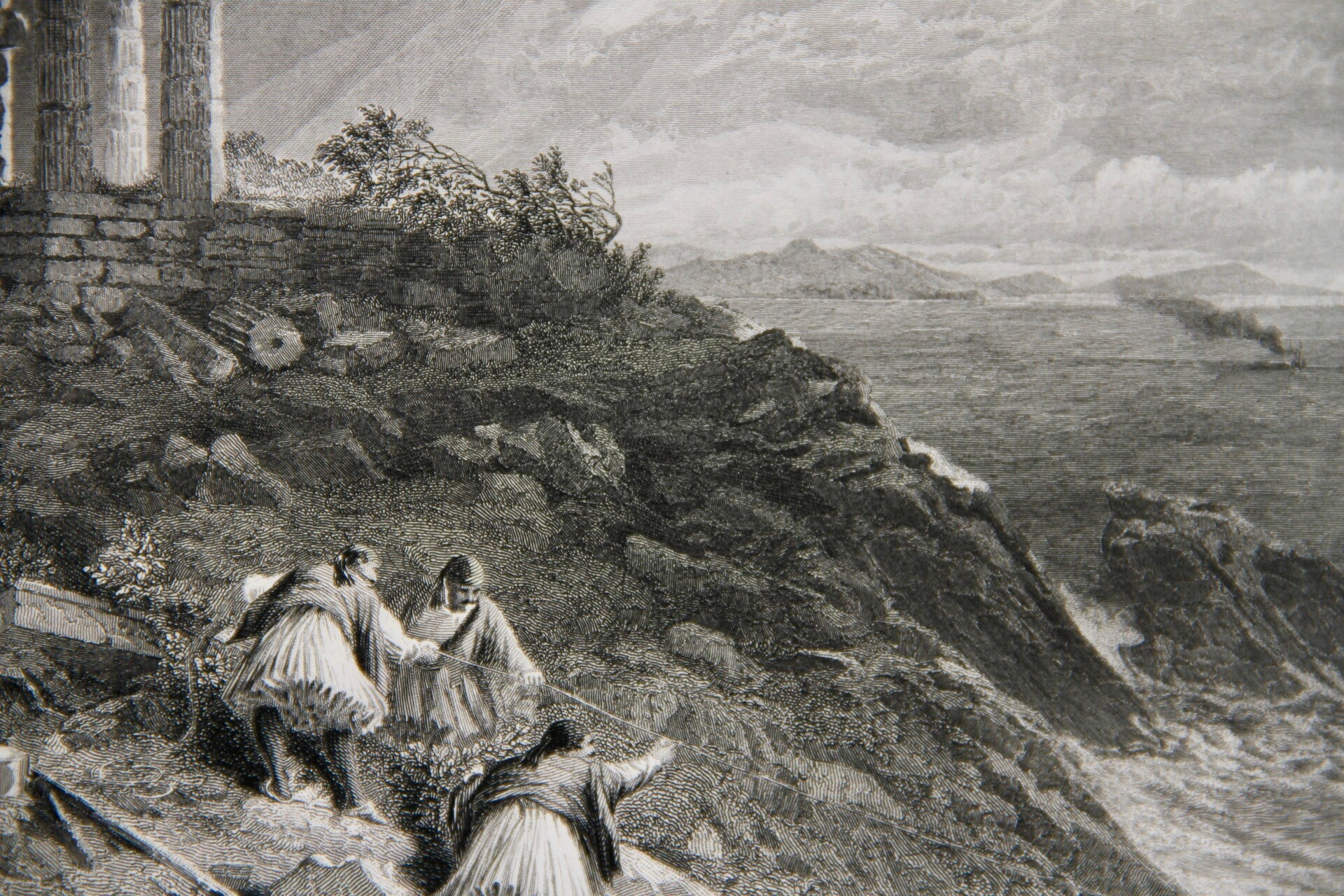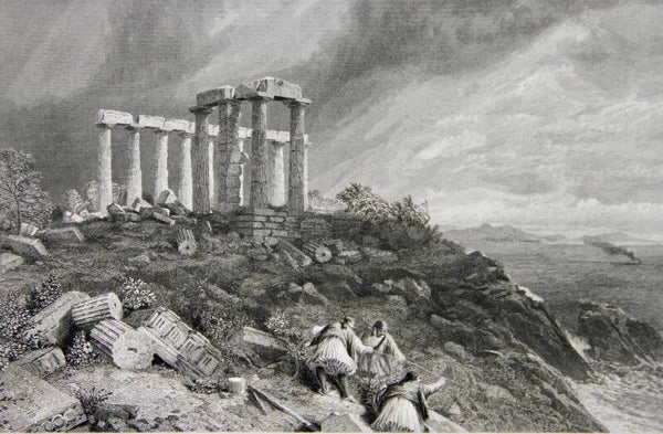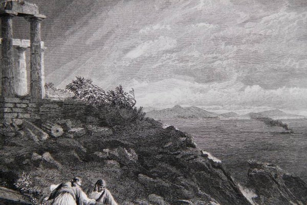 19th century steel engraved print “Temple of Minerva, Sunium”