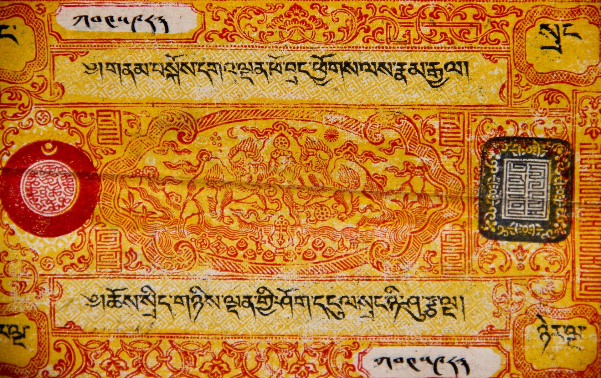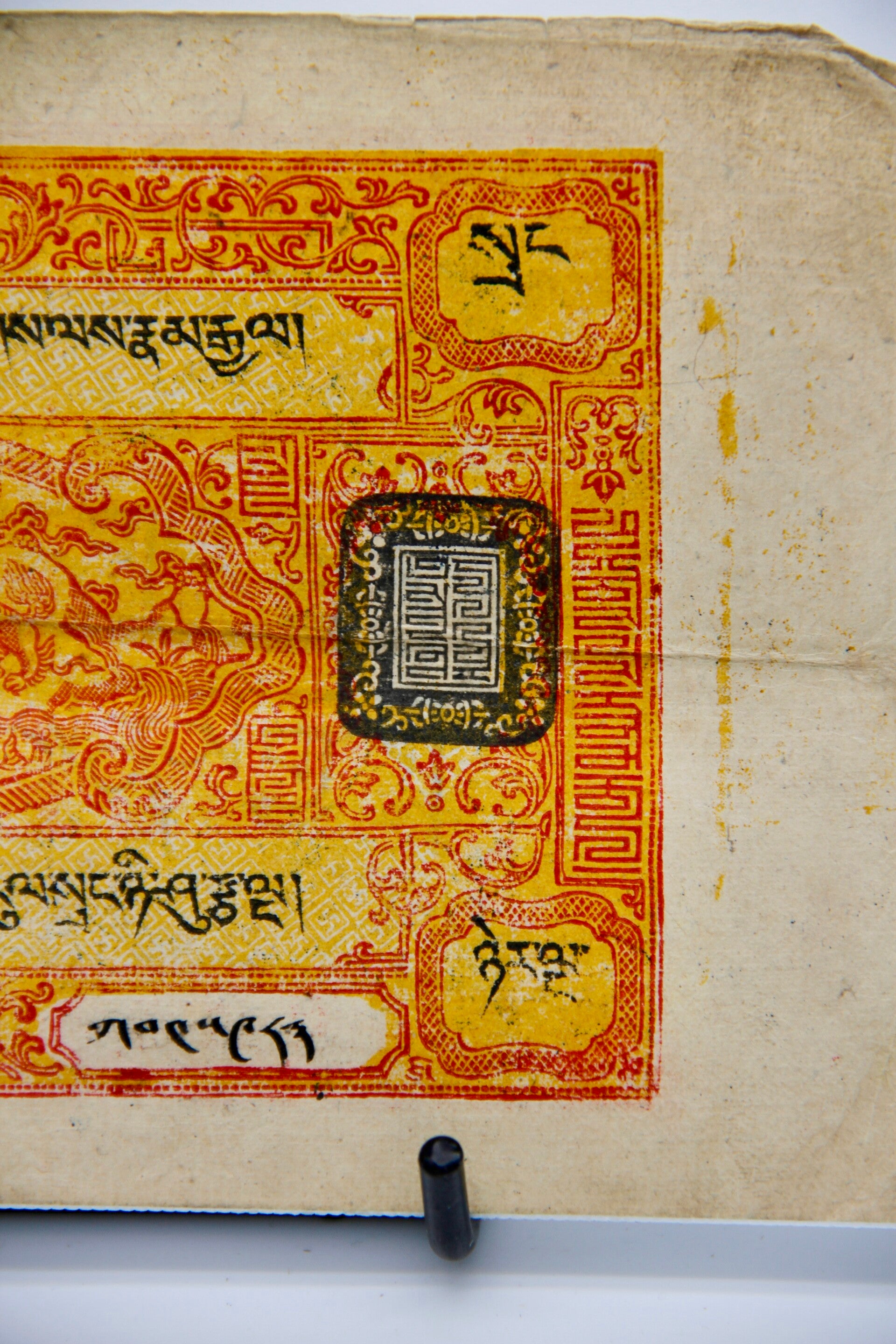 For sale is a rare Tibetan 25 Srang currency note from independent Tibet, sourced from the esteemed coffers of a prominent Tibetan merchant family. This artifact bears historical significance, showcasing the unique monetary system of pre-Chinese occupation Tibet. It offers a tangible connection to Tibet's rich cultural and economic heritage. Serious collectors and enthusiasts alike will appreciate the opportunity to add this prized piece to their collections.