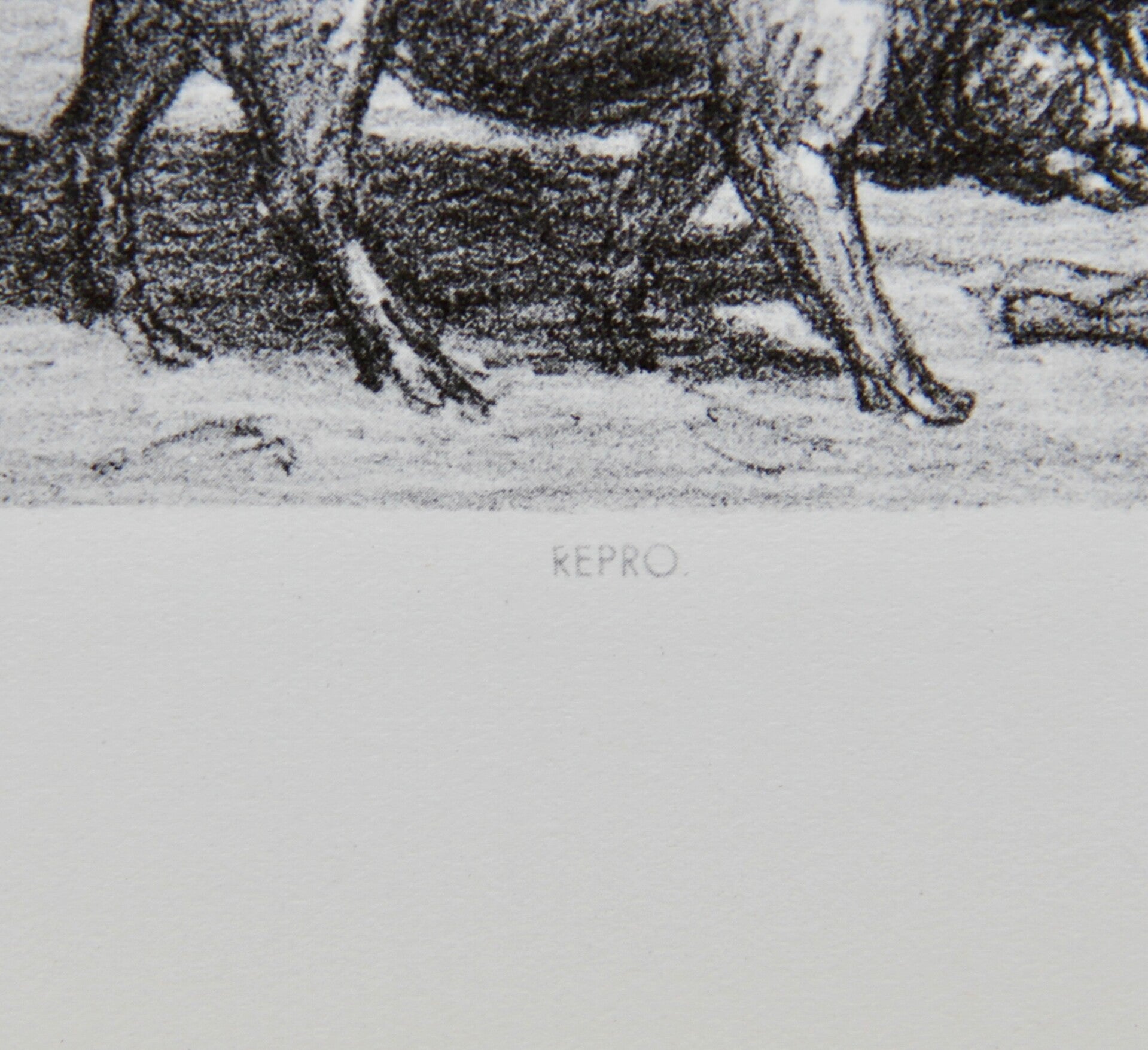This Mid century American reproduction print titled “Hogs Near a Corncrib” is by Harry Wickey. In 1935, Wickey began to have difficulties with his sight, and thus had practically to abandon etching, for which extremely close work is required.