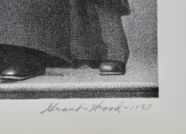 This Mid century American reproduction print “Honorary Degree” is by Grant Wood.